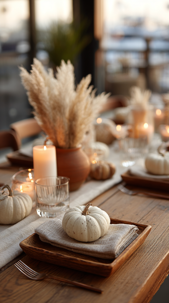 How-to: Mini-Kürbisse in Weiß, Beige oder Terracotta bemalen, auf den Tischen arrangieren und mit Kerzen kombinieren.