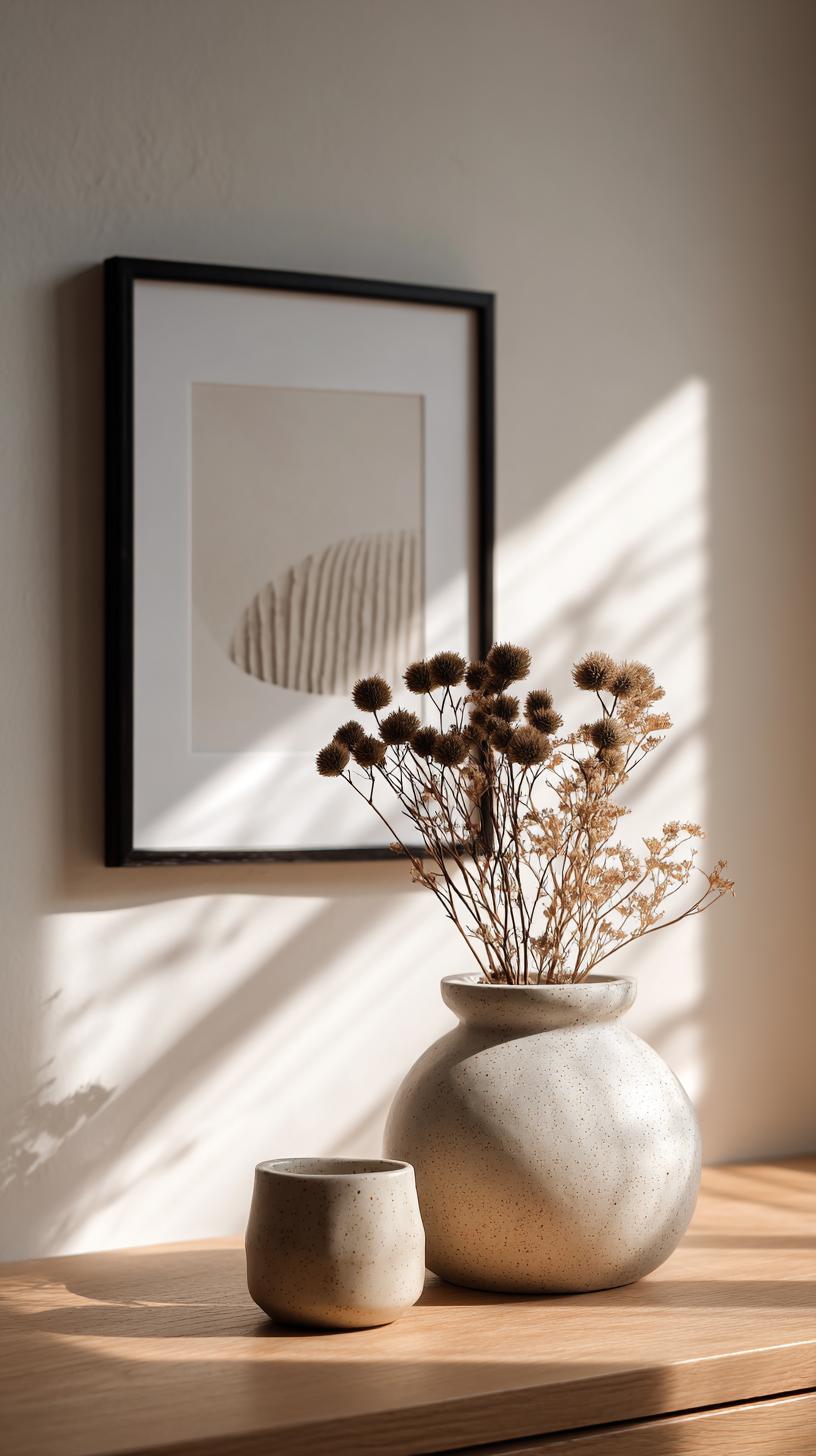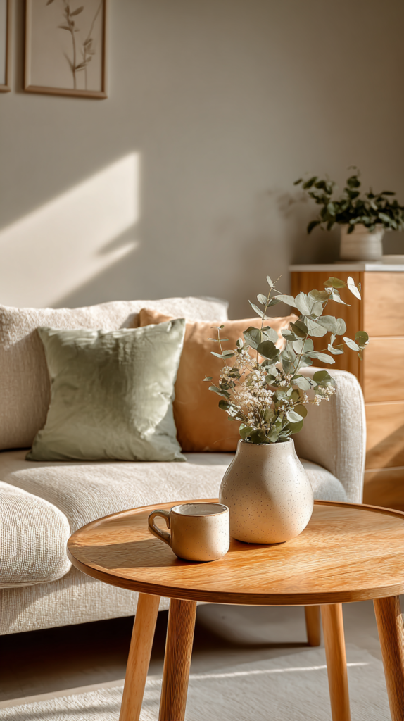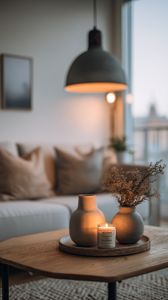 Kleine Räume profitieren von Reduktion. Statt viele kleine Deko-Objekte zu platzieren, wähle wenige, dafür ausdrucksstarke Stücke: ein Bild mit Naturmotiv, eine große Vase oder eine skandinavische Hängelampe. Weniger ist mehr – so bleibt der Raum luftig.