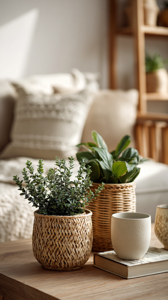 Grünpflanzen bringen Leben und Frische in kleine Räume. Besonders beliebt sind Monstera, Ficus oder kleine Kräuter in Töpfen. Achte auf schlichte Töpfe aus Keramik oder Korb, die in die Farbpalette passen. Pflanzen verbessern nicht nur das Raumklima, sie setzen auch natürliche Akzente.