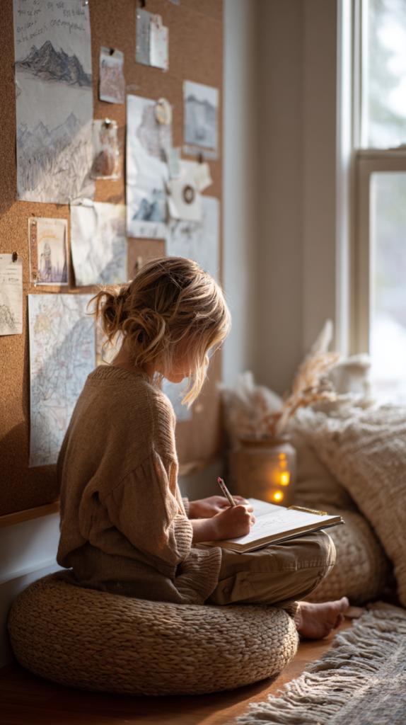 Vision Boards sind nicht nur etwas für Erwachsene – auch Kinder finden es toll, kleine Bilder oder Symbole auszuwählen, die für ihren Tag stehen. Das kann ein Bild vom Lieblingsspiel, ein Stern für Mut oder ein Herz für Freude sein. Erwachsene können Affirmationen oder Ziele hinzufügen, die sie an diesem Tag begleiten. Gemeinsam aufgehängt oder auf eine Pinnwand geklebt, entsteht ein kreatives Morgenritual. Es fördert Fokus, Selbstbewusstsein und Motivation. Und es macht Spaß, diese Boards abends wieder anzusehen und zu reflektieren, was davon eingetreten ist.